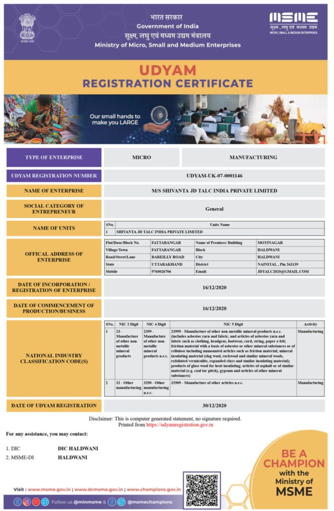 MSME Udyam Registration Certificate.