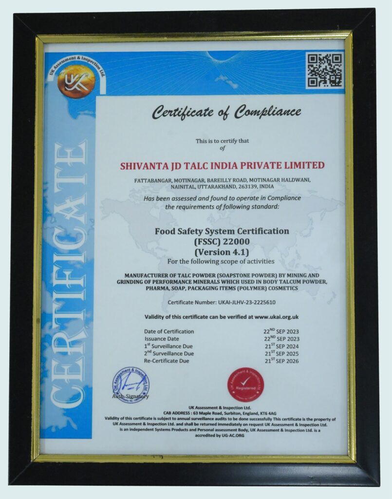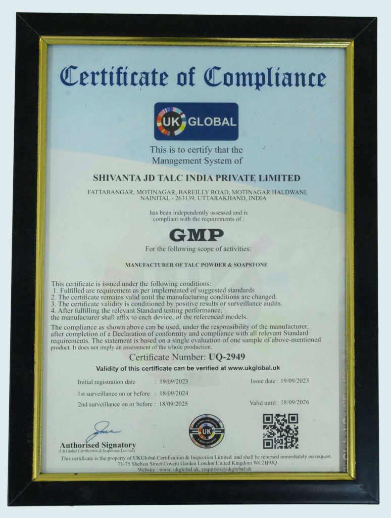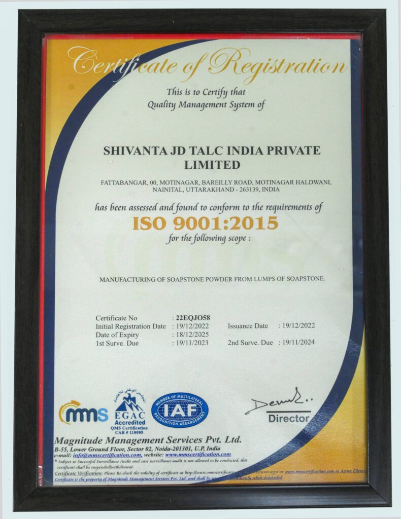 Shivanta JD Talc As one of the pioneering brands in the mining industries We recognized and bestowed the following awards and Certificates.